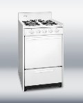 White gas range in slim 20" width with pilot light ignition; replaces WTM110, two oven racks, lower broiler, 2.5 cu ft oven capacity, 40 H x 20 W x 24 in D ( Summit Refrigeration - WNM110 NG )